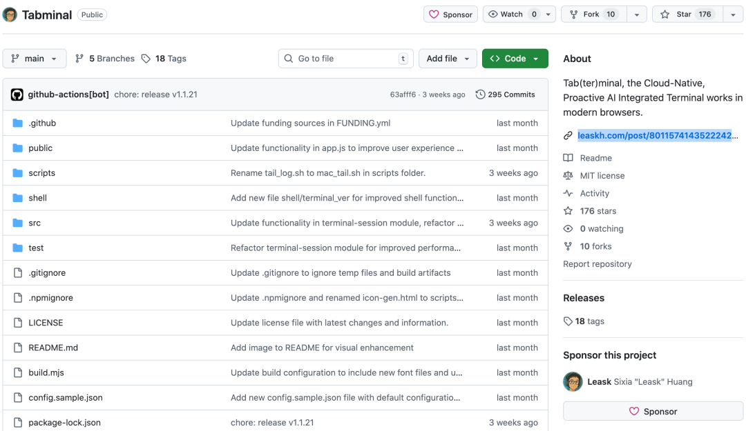 在 GitHub 上看到一个叫 Tabminal 的终端项目,挺有意思。