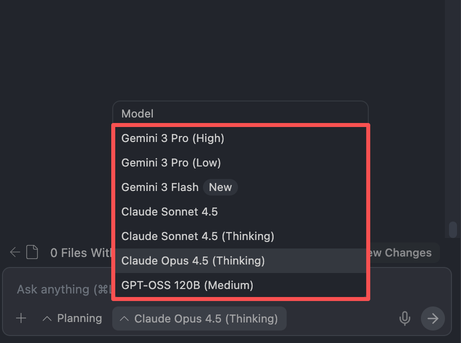 Antigravity 内置的大模型不只是 Gemini 系列的,还有 Claude Sonnet 4.5 和 Claude Opus 4.5,而这些都有大量免费额度。